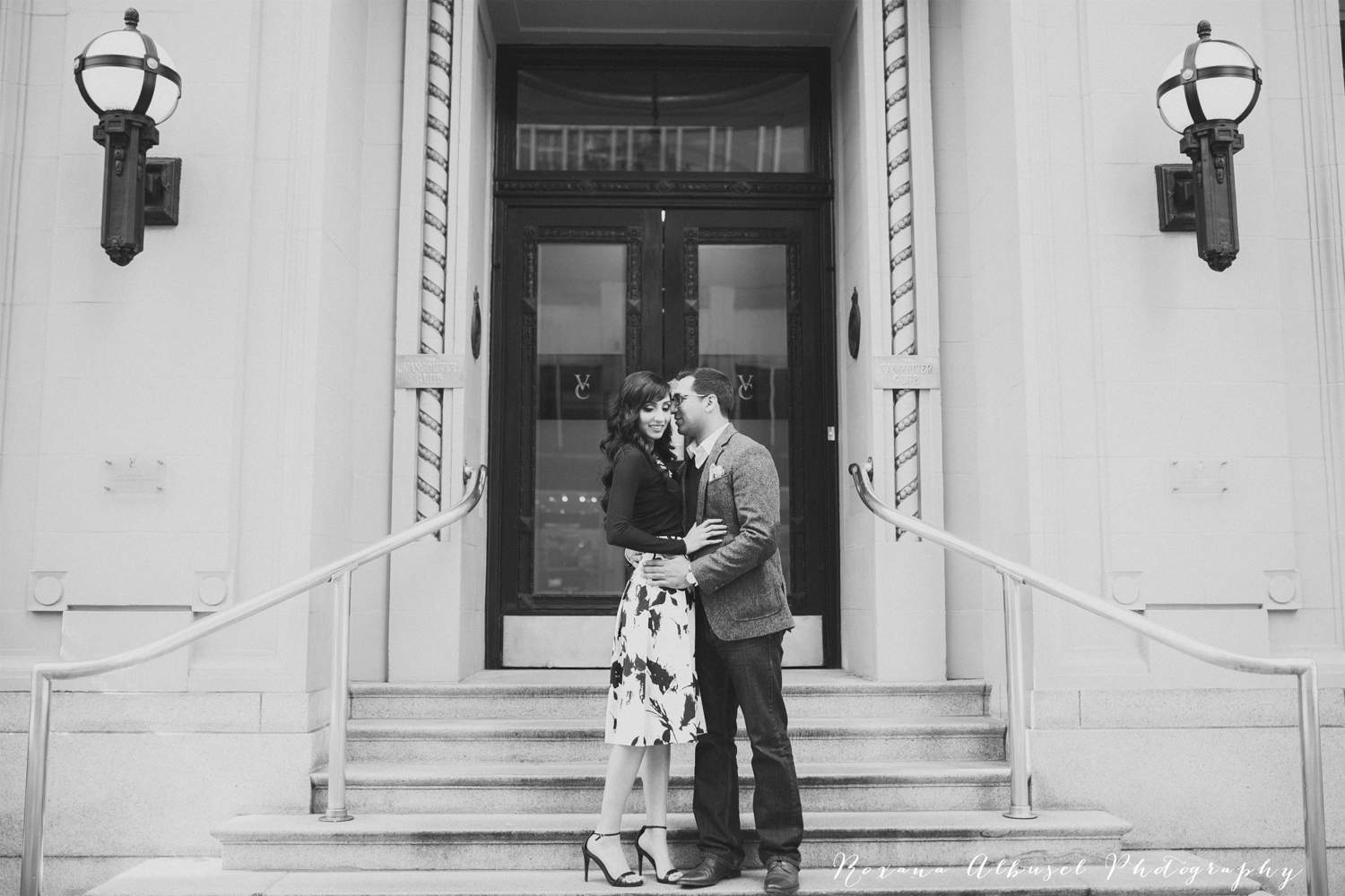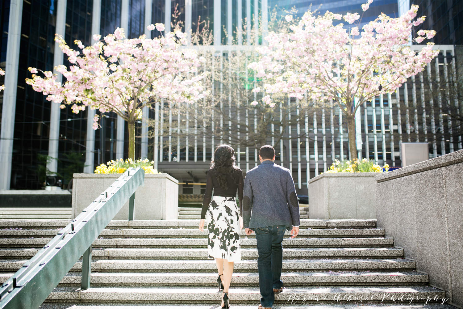 Ahhhh I can’t wait until August when this gorgeous, gorgeous couple gets to say their I do’s in front of their family and friends. I met S & R at a bridal show a few years back and we hit it off right away. After a few emails and a couple of meetings, we decided to work together and ohhh I’m so ever glad we did. These two are so ridiculously easy and fun to photograph and I can only imagine how gorgeous their wedding is going to be. To experience a bit of Spring and a bit of Fall, we decided to split their engagement into two parts for better variety. In November, colour was so prevalent .. brights reds and yellows and oranges in Vancouver’s always photogenic Stanley Park. This time around we took advantage of the remaining cherry blossoms and used downtown Vancouver’s old gorgeous buildings as backdrops for the rest of the shoot. There are certain buildings downtown that are so incredibly photogenic and I could shoot at again and again and again. I loved our time together and I’m so excited to share some of my favourite images for the day! Thanks, you two! :)