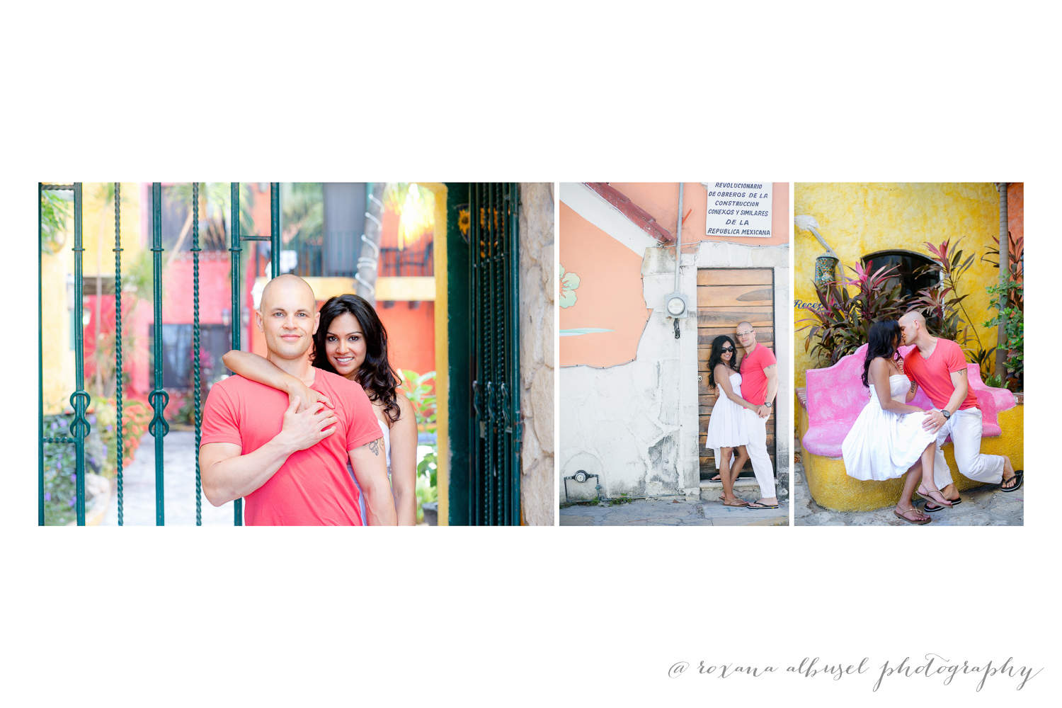 Recently I posted about Tamiza and Blake’s beautiful Tulum destination wedding, of which I was lucky to be a part of. As Tamiza and Blake didn’t get a chance to do an engagement session with me, we decided to do a portrait session in Playa del Carmen, the day after the wedding. Having been here in November of 2014 for another wedding, I was familiar with the area, but it was still a lot of fun to explore it with Tamiza and Blake and get their take on their favourite parts of Mexico’s beautiful architecture and character.